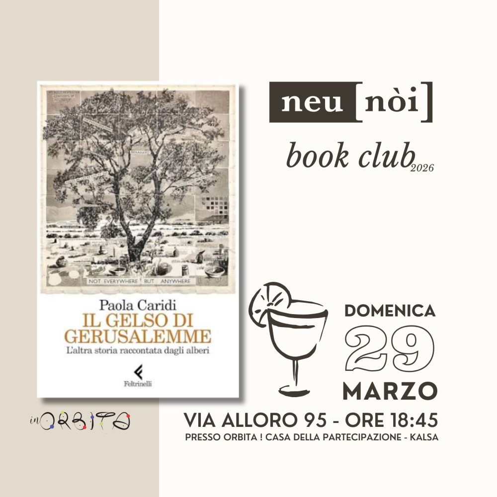 L’incontro del book club di neu [nòi] dedicato a questo libro è stato uno di quelli in cui la discussione prende vita propria. Si parte dal testo, si arriva alla Palestina, poi all’Orto Botanico di Palermo, poi allo Spasimo, poi a Milano e ai suoi alberi di marketing, poi alla piramide di Maslow. Caridi avrebbe probabilmente sorriso.